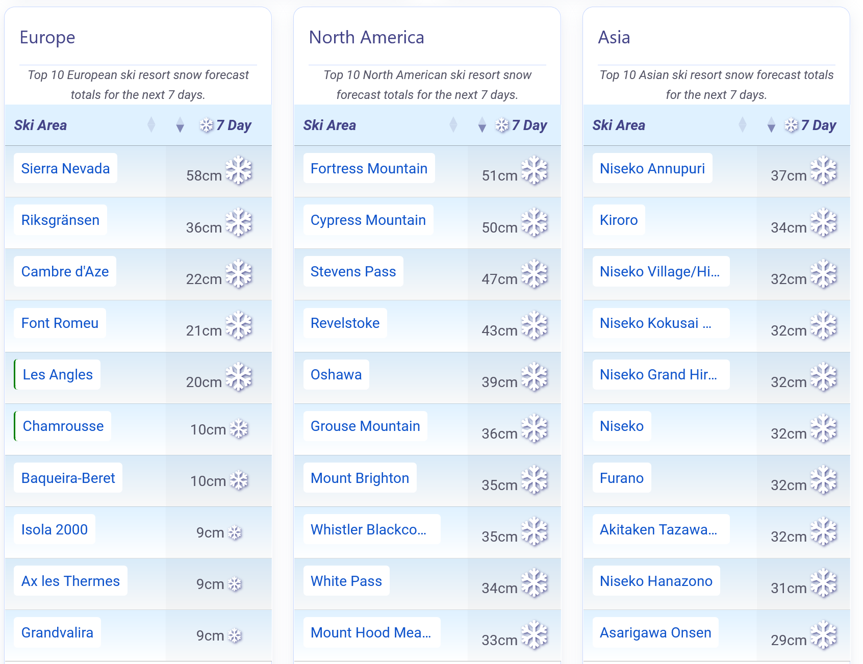 In Alberta, Banff's Sunshine and Lake Louise hold strong mid-winter cover and are at almost full operation. Eastern Canada remains cold and well covered, with Tremblant and other leading resorts in the region close to fully open.