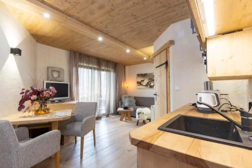 The apartment has 1 bedroom, 3 bathrooms, bed linen, towels, a flat-screen TV with satellite channels, a dining area, a fully equipped kitchen, and a terrace with mountain views. A private entrance leads guests into the apartment, where they can enjoy some wine or champagne. This apartment is allergy-free and non-smoking.