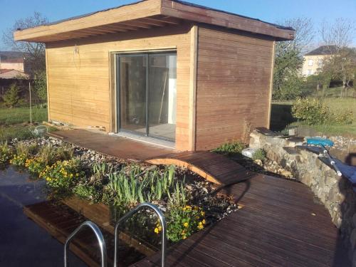 This chalet's standout feature is the private pool. Boasting a private entrance, this chalet includes 1 living room, 1 separate bedroom and 1 bathroom with a walk-in shower and a hairdryer. Guests will find a refrigerator, kitchenware, a microwave and a tea and coffee maker in the kitchenette. The chalet also features a barbecue. Featuring a terrace with garden views, this chalet also offers soundproof walls and a flat-screen TV. The unit has 1 bed.