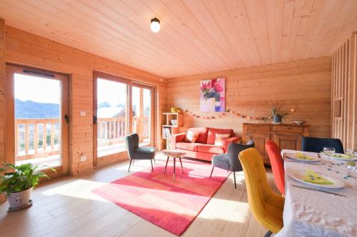 Located in Manigod in the Rhône-Alps region, Appartement dans le Chalet l'Albert features a balcony and mountain views. This property offers access to a terrace and free private parking. The property is non-smoking and is situated 42 km from Halle Olympique d'Albertville.