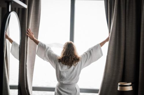 This spacious room features a Nespresso® coffee machine, as well as bathrobes and slippers. Most rooms have sea views.