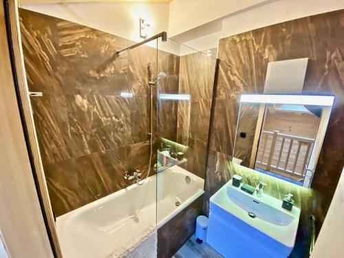 This chalet features a fireplace. This spacious chalet features 1 living room, 4 separate bedrooms and 4 bathrooms with a bath and a shower. Guests can make meals in the kitchen that has a stovetop, a refrigerator, a dishwasher and kitchenware. The chalet features a flat-screen TV with cable channels, a washing machine, a private entrance, a tea and coffee maker as well as mountain views. The unit has 6 beds.