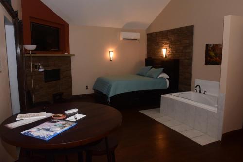 Guests will have a special experience as this suite provides a fireplace. Offering free toiletries, this suite includes a private bathroom with a shower and a hairdryer. In the well-fitted kitchen, guests will find a refrigerator, kitchenware, a microwave and a toaster. The air-conditioned suite offers a flat-screen TV with cable channels, a private entrance, a tea and coffee maker, a seating area as well as garden views. The unit has 1 bed.