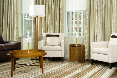 This downtown Minneapolis hotel is 4 minutes from the Minneapolis Convention Center and features an on-site restaurant and indoor pool. Modern rooms are furnished with a 42-inch flat-screen cable TV. Coffee machines and a hair dryer are also included in each of the rooms.